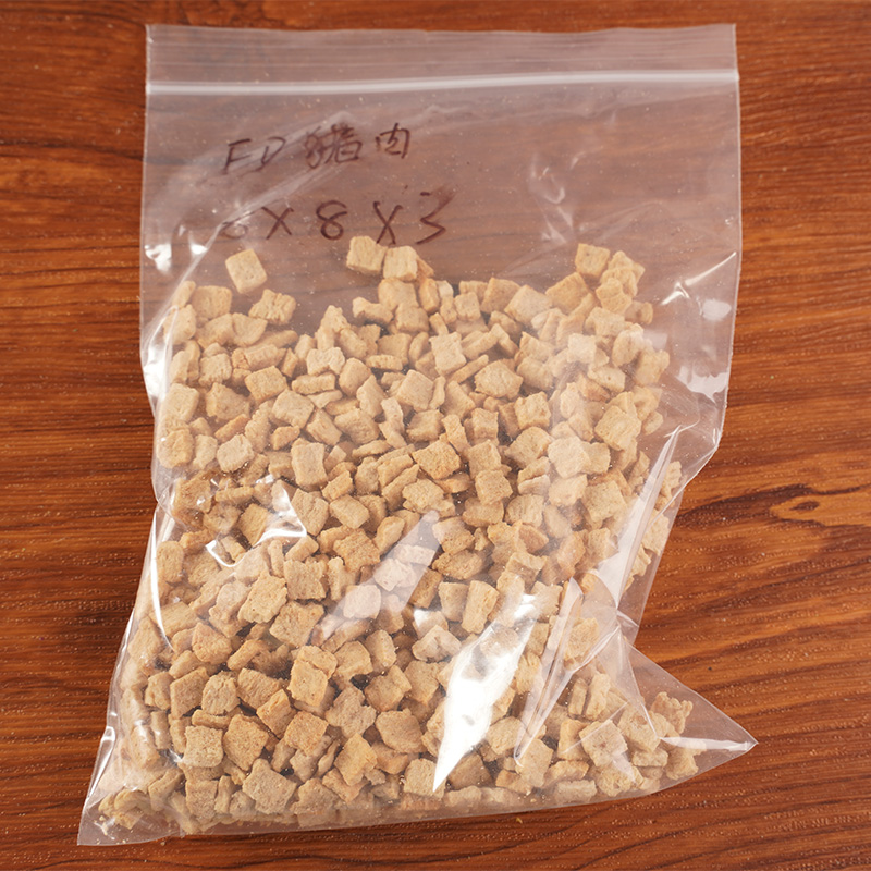 Carnea de porc uscată prin congelare își poate păstra nutrienții originali și poate evita deteriorarea sau pierderea de oxidare din cauza componentelor sensibile la căldură în timpul procesării. Are o aromă puternică, deoarece este carne crudă sterilizată cu temperatură ultra-scăzută, fără umiditate aproape fără umiditate și are o experiență de gust diferită decât carnea de porc fiertă. Produsele de porc uscate congelate au o greutate ușoară, ușor de transportat și depozitat și potrivite pentru călătorii, petreceri și alte ocazii.